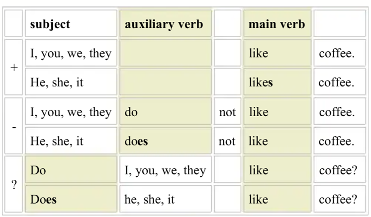 v For positive sentences, we do not normally use the auxiliary .