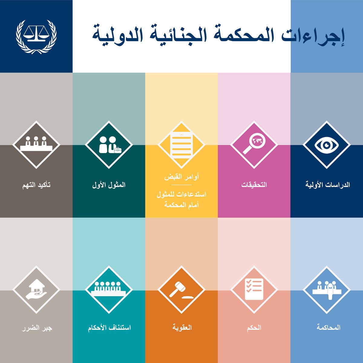 المحكمة الجنائية الدولية (2002): أُعتمد نظام روما الأساسي في 17 يوليو 1998 ودخل حيز التنفيذ في 1 يوليو 2002، لتكون أول محكمة دائمة للنظر في أخطر الجرائم (الإبادة، الحرب، ضد الإنسانية، العدوان).