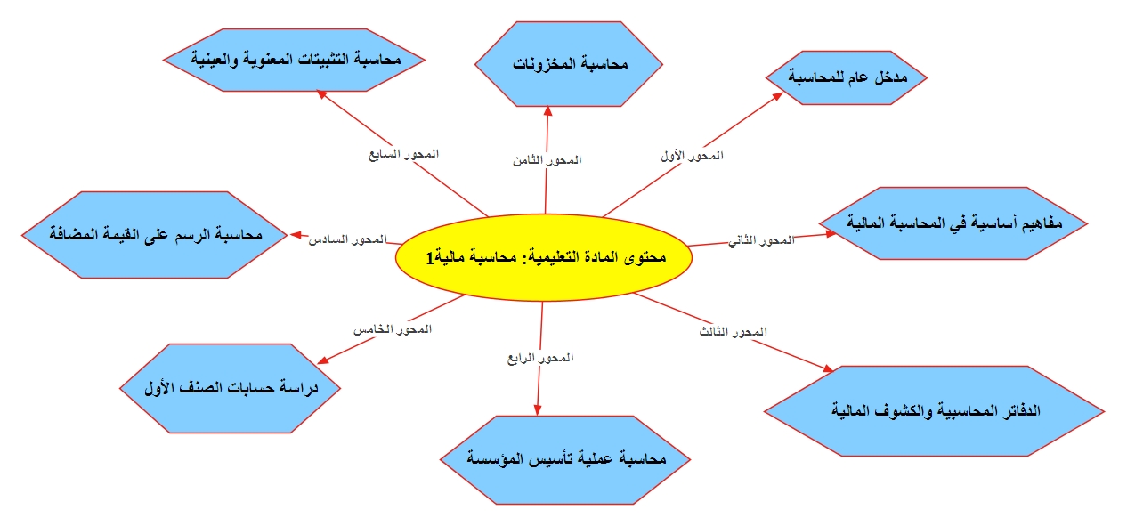 يشمل المقياس ثمانية محاور متكاملة تبدأ بـ مدخل عام لعلم المحاسبة الذي يتناول نشأة المحاسبة ومفهومها وأنواعها وأهدافها والفروض والمبادئ التي تقوم عليها، إضافة إلى التعريف بالنظام المحاسبي المالي الجزائري. ثم يأتي المحور الثاني لعرض المفاهيم الأساسية في المحاسبة المالية مثل التدفقات الاقتصادية، ونظرية القيد المزدوج، والمستندات المحاسبية، ومراحل الدورة المحاسبية. أما المحور الثالث فيُخصص لدراسة الدفاتر والكشوف المالية، كدفتر اليومية ودفتر الأستاذ وميزان المراجعة، إضافة إلى الميزانية وجدول حسابات النتائج.ويتناول المحور الرابع محاسبة عملية تأسيس المؤسسة، سواء كانت مؤسسة فردية أو ذات طابع جماعي، مع دراسة كيفية المعالجة المحاسبية لانسحاب الشركاء وحساب المستغل. بينما يُركز المحور الخامس على دراسة بعض حسابات الصنف الأول مثل حساب النتيجة، الترحيل من جديد، والاحتياطات. أما المحور السادس فيتطرق إلى محاسبة الرسم على القيمة المضافة (TVA)، من حيث تعريفه، مجال تطبيقه، قابلية الخصم، والتسجيل المحاسبي له. ويأتي المحور السابع لشرح محاسبة التثبيتات المعنوية والعينية من حيث اقتناؤها، اهتلاكها، والتنازل عنها أو تخريدها. ويختتم المقياس بـ المحور الثامن الذي يُعالج محاسبة المخزونات، من تعريفها وتصنيفها إلى طرق تقييمها وجردها في المؤسسات التجارية والصناعيةيرافق كل محور سلسلة من التمارين التطبيقية لترسيخ الجانب العملي لدى الطلبة، وتمكينهم من تطبيق المعارف النظرية على حالات واقعية. وبذلك، يهدف المقياس إلى إعداد طلبة يمتلكون فهماً شاملاً للمحاسبة المالية، قادرين على تحليل النتائج المالية للمؤسسة وإعدادالقوائم الماليةhttps://www.youtube.com/watch?v=eLnjyoCSn0I
