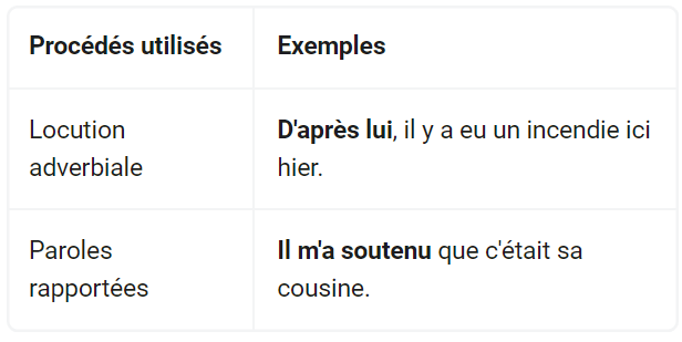Plusieurs procédés grammaticaux peuvent être utilisés pour modaliser le discours. Ils sont répertoriés dans le tableau suivant :