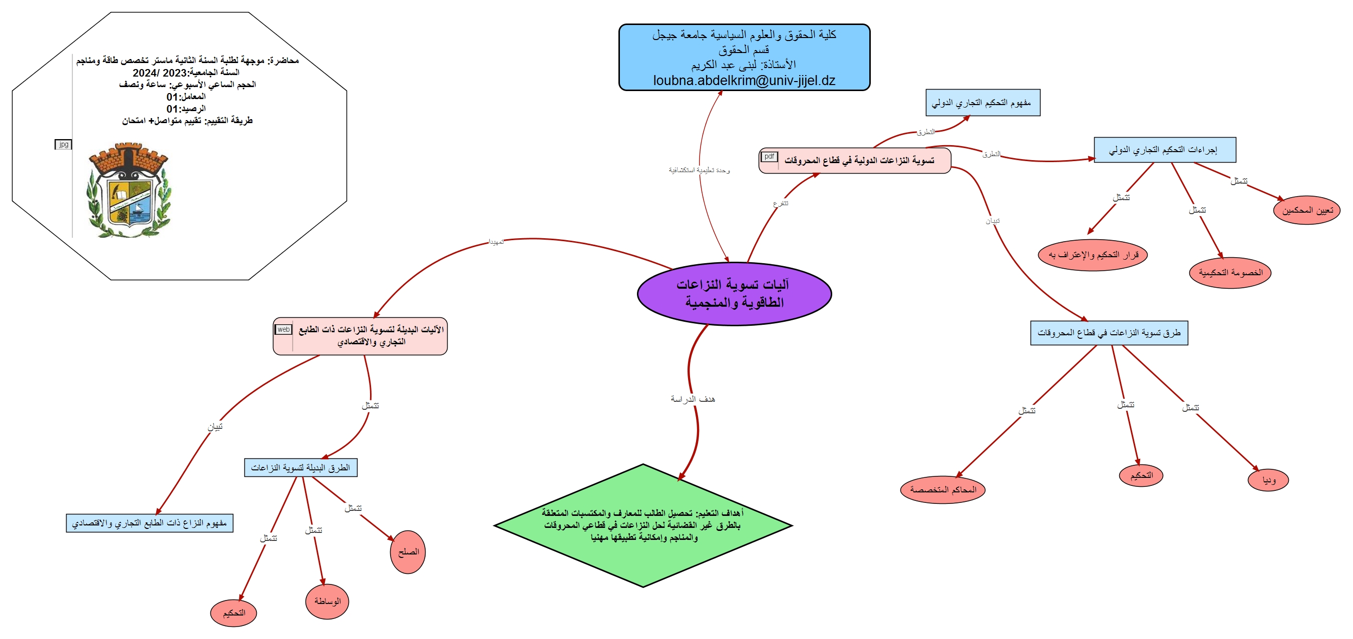 بعد الانتهاء من المقياس التعليمي أليات تسوية النزاعات الطاقوية والمنجمية سيكون الطالب قادرا على: