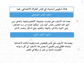 ويعتمد هذا الأسلوب في قياس الحراك الاجتماعي على تقدير المفحوص نفسه وتقييمه لمكانته الاجتماعية وانتمائه الطبقي، ومن الطبيعي أن يتعرض هذا الأسلوب إلى كل ما يواجه التقديرات الذاتية من تحيز أو مبالغة في التقدير.